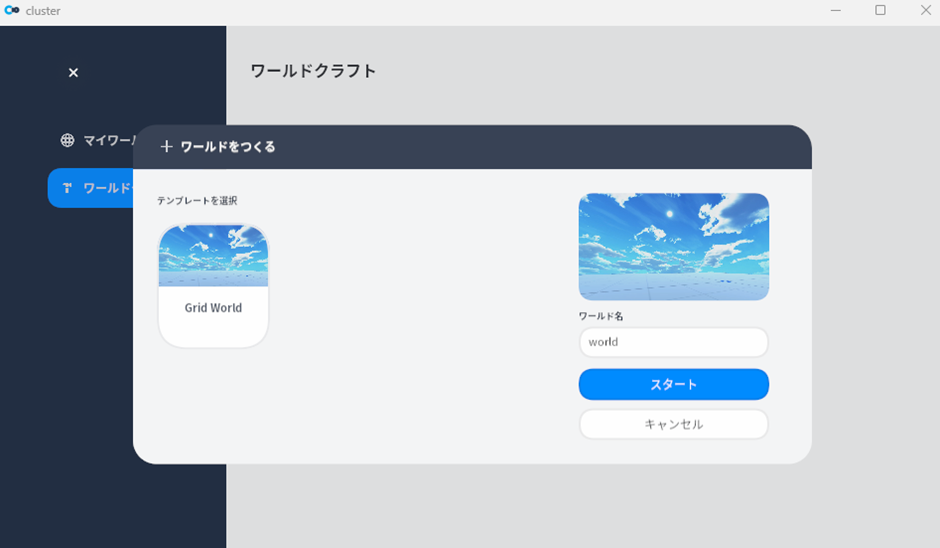 ワールドクラフト機能を使えば、誰でも簡単に数分程度でワールドを作って公開できます。clusterをインストールしている方であれば、特に何か準備する必要はありません。