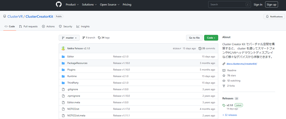 Github Clusterテンプレート:https://github.com/ClusterVR/ClusterCreatorKitTemplate