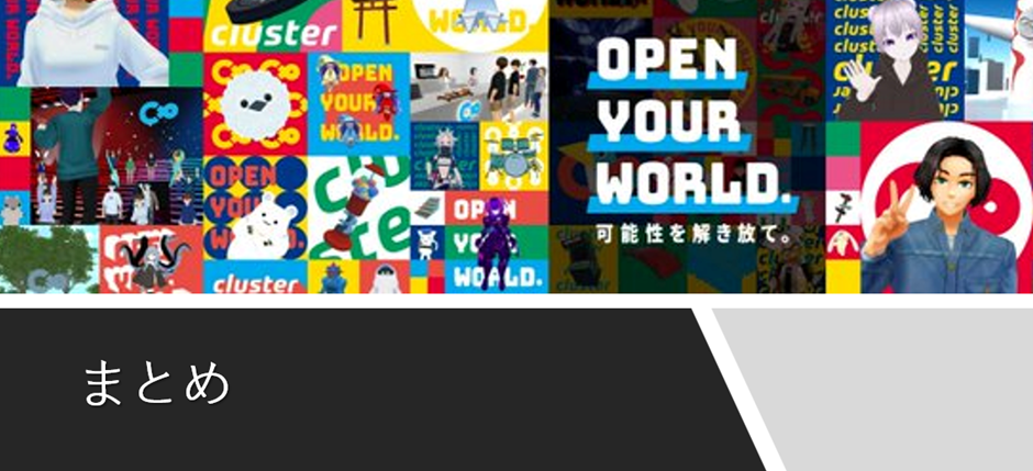 以上、cluster(クラスター)でワールドを作る方法を解説させて頂きました。clusterでのワールド作成に興味がある方、これからワールドを作成する計画のある方々に向けて有益な情報となれば幸いです。