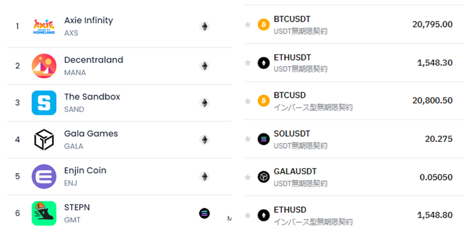 また、NFTを活用したBCG(Block Chain Game)も話題となります。ブロックチェーン技術を活用したゲームをプレイすることで、暗号資産(FT)を稼げるようになります。いわるゆP2E(Play to Earn)タイトルです。P2Eが目的で暗号資産トレードを始めたという方は多いでしょう。